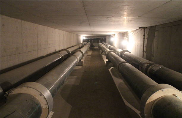 設計規模:南區熱(冷)管網,冷熱同網,最大管徑DN1000,管網總長度1.65km.